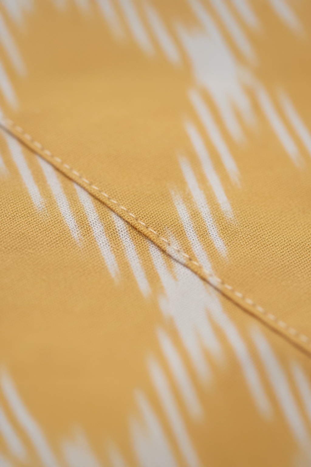 Sunny yellow base with delicate white ikat prints creates a lively, heritage-inspired look.